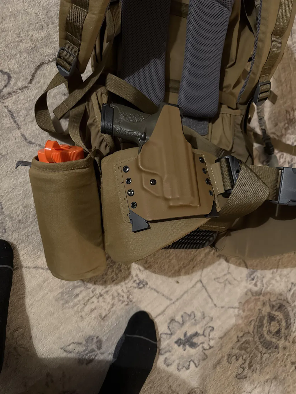Seen that the ivory holsters were compatible with my K4 pack from exo. Now I can take my Glock 19x attached to my hip belt, so far it's been secure and fits great. Only slight problem I personally have is that when I draw it can sometimes brush against the shoulder strap buckle. Left handed draw also!!